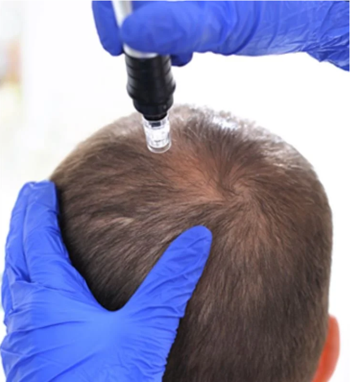 Platelet-Rich Plasma (PRP) has been shown to be an effective, safe, and non-surgical method for hair loss treatment. The treatment takes platelet-rich plasma from the patient’s own blood. A topical anesthetic is applied to the treatment area before injection to minimize the potential for discomfort. Once the PRP is isolated from the blood, it is injected into the area affected by hair loss or hair thinning. PRP is then miconeedled into the scalp to additionally help promote hair growth and maximize the efficacy of each treatment.